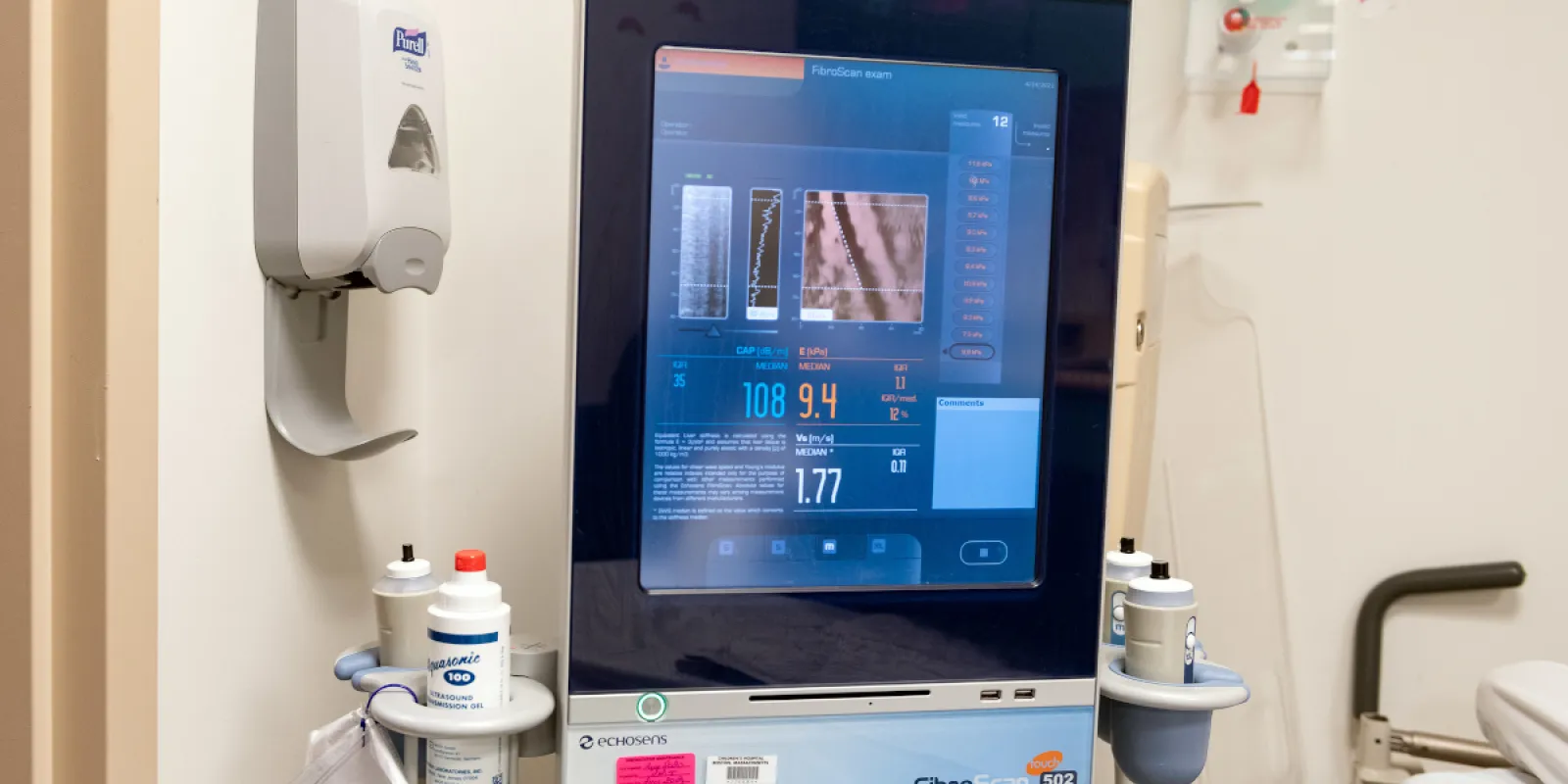 Boston Children’s was the first pediatric hospital in the U.S. to study FibroScan® (Vibration-Controlled Transient Elastography). This noninvasive test measures your child’s liver stiffness and fat, which allows us to predict their degree of scarring and fatty liver disease. We recently acquired the latest version of the FibroScan machine, which measures both liver and spleen stiffness.